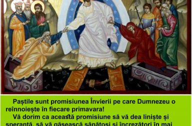Paștile sunt promisiunea Învierii pe care Dumnezeu o reînnoiește în fiecare primăvară! Vă dorim ca această promisiune să vă dea liniste și speranță, s…